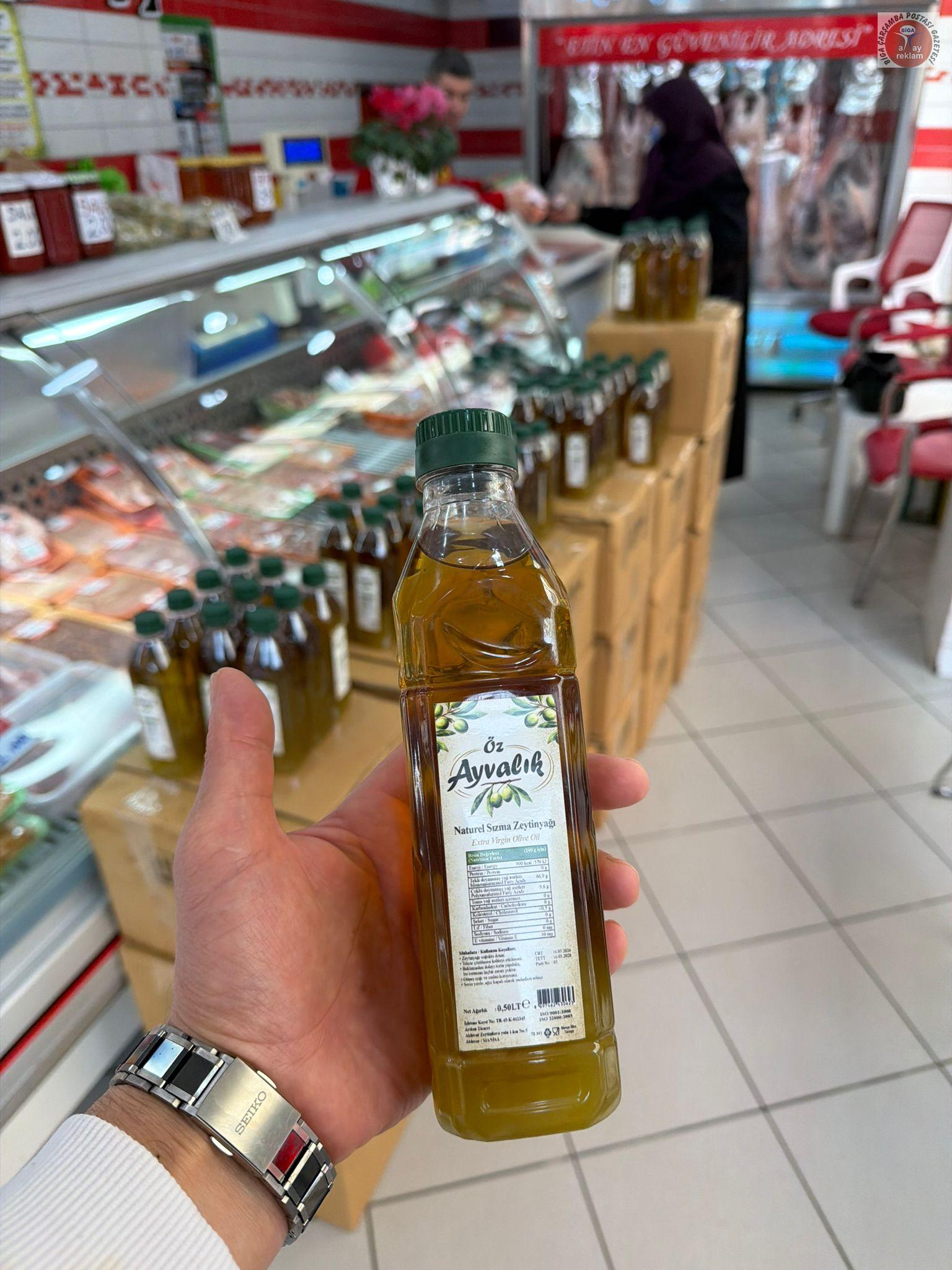 Korkmaz Et’ten alışveriş yapan müşterileri 500gr’lık zeytinyağını ikram olarak alıyor. Korkmaz Et sahibi Muharrem Korkmaz; “Müşterilerimize bugün zeytinyağı ikram ediyoruz. Ali Dayıoğlu müdürümün kendi üretimi 500gr’lık 500 şişe zeytin yağı. Amacımız mutfak masraflarına katkıda bulunmak. Her hafta farklı ürünleri hediye ederek müşterilerimizi memnun etmek için uğraşıyoruz. Müşteri memnuniyeti bizim için çok önemlidir. Her hafta olduğu gibi bu haftada taze ürünlerimizi reyonlarımızda müşterilerimiz ile buluştururken ayrıca zeytinyağlarını hediye ediyoruz. Tüm müşterilerimizi bekliyor afiyet olsun diyoruz.” açıklamasını yaptı.