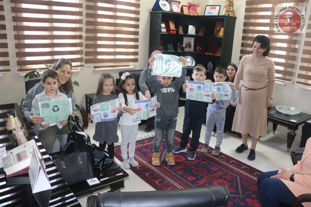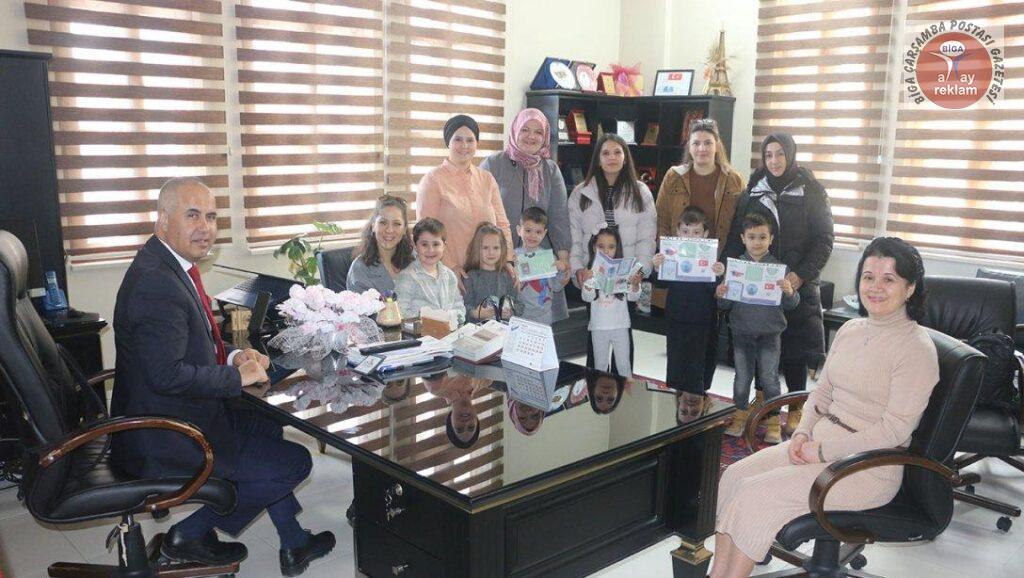 Biga Ticaret Borsası Anaokulu öğrencileri, okul müdürü Muradiye Yazan ve öğretmenleri Sevinç Cür Türkan ile beraber Biga İlçe Milli Eğitim Müdürü Erkan Bilen’i ziyaret ederek projeleri hakkında bilgi verdiler.