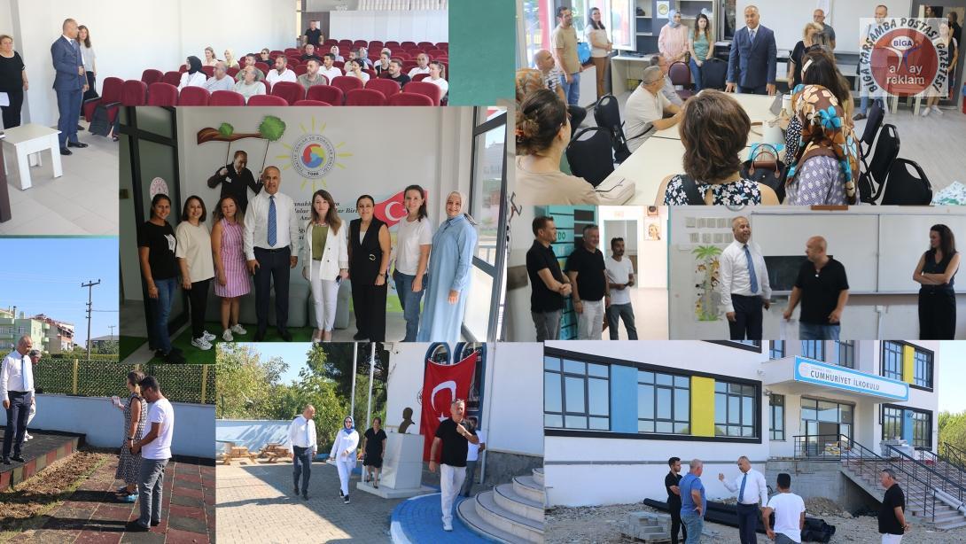 Son olarak da Cumhuriyet İlkokulu/Ortaokulu yeni binasındaki çalışmaları yerinde inceledi.
