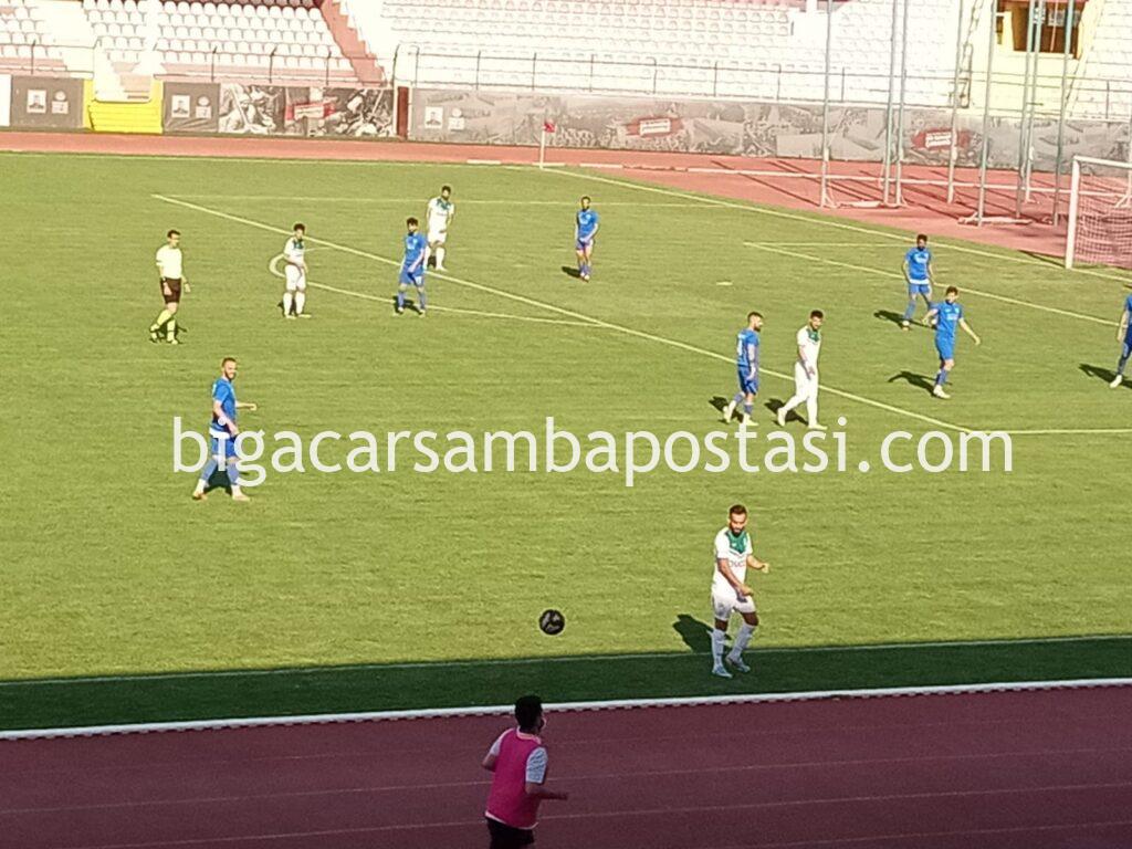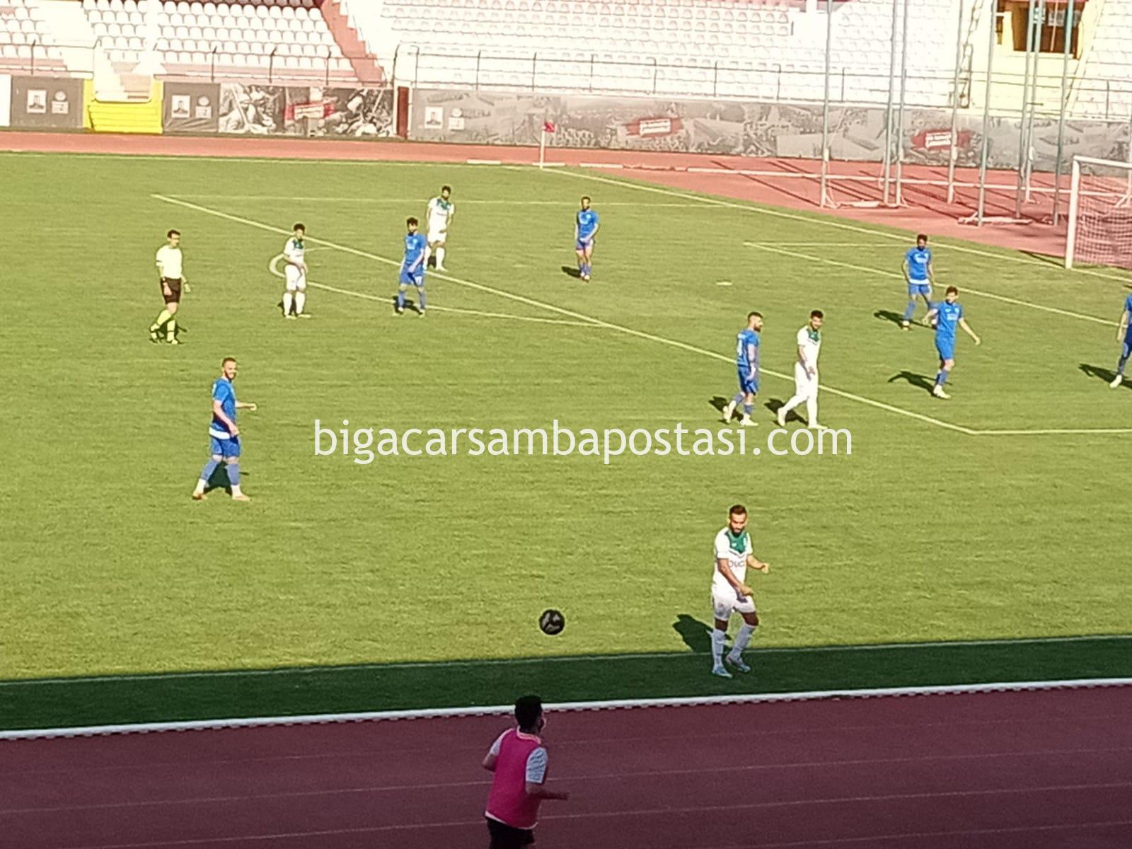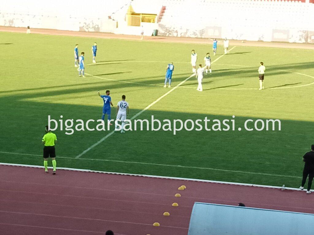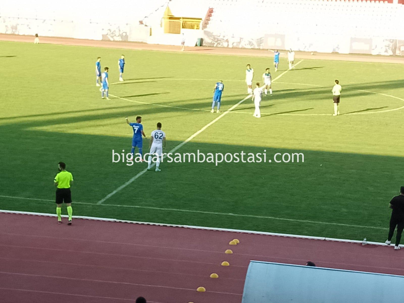 İstedigini elde eden deplasman takımı oyuncuları adeta yerden kalkmadılar, her pozisyonda yerdeydiler. Bu vesile ile maç 7 dakika uzadı ancak 9 dakika uzatma oynandı. Maçın 89.dakikasında Bigaspor atağında Remzi Şahin kafa vuruşu ile attığı gol Bigaspor’u liderliğe taşıdı. Ancak kader anı 97. dakikaydı. Bu dakikada Bursa Nilüferspor atağında top direkten döndü ve maç 1-1 beraberlik ile sona erdi. Bigaspor artık üst turda oynayacağı rakibini bekliyor.