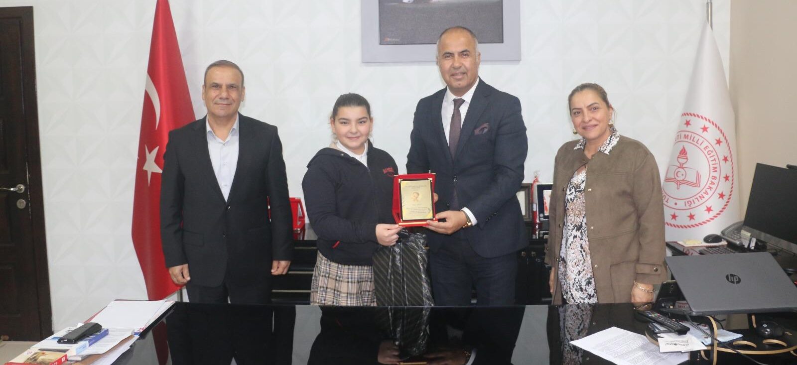 Bigalı SMA hastası Melisa İnal bebeğin tedavi masrafları için başlatılan kampanyaya yaptığı sosyal sorumluluk projesi ile destek olan Hamdibey Ortaokulu öğrencisi Beren Üstün’e Biga İlçe Milli Eğitim Müdürü Erkan Bilen plaket verdi.