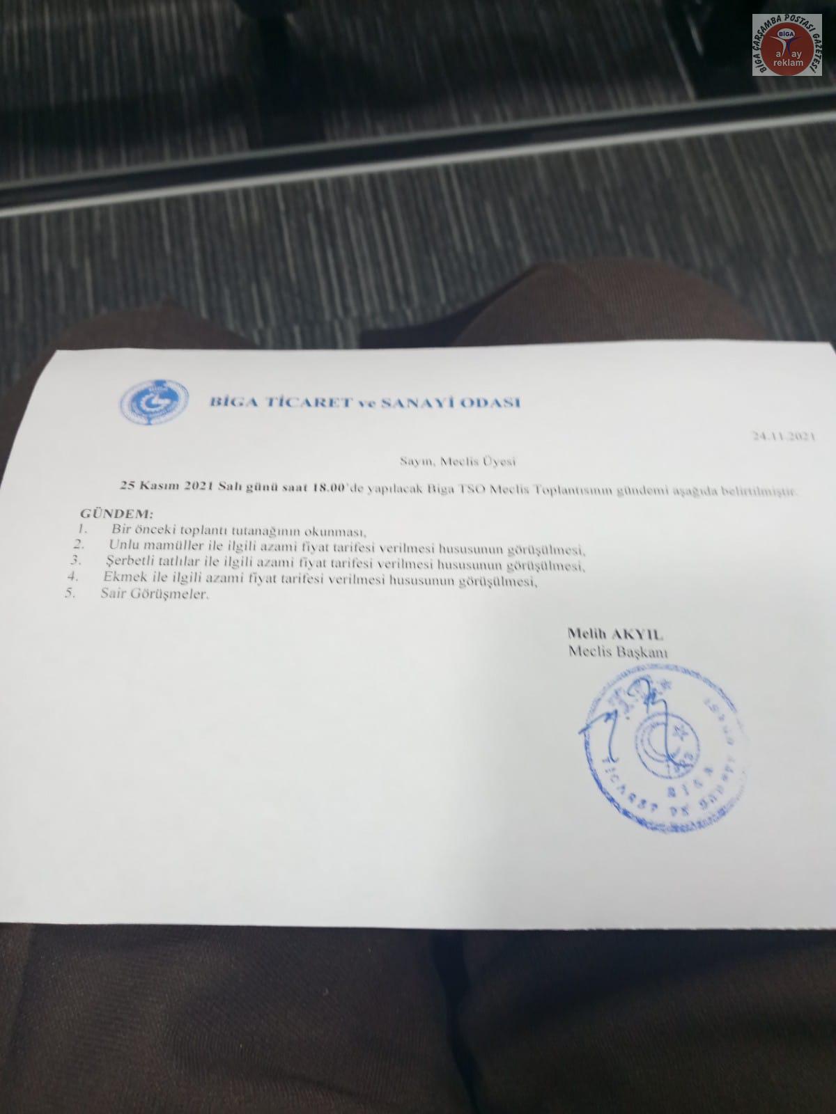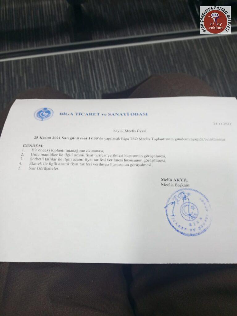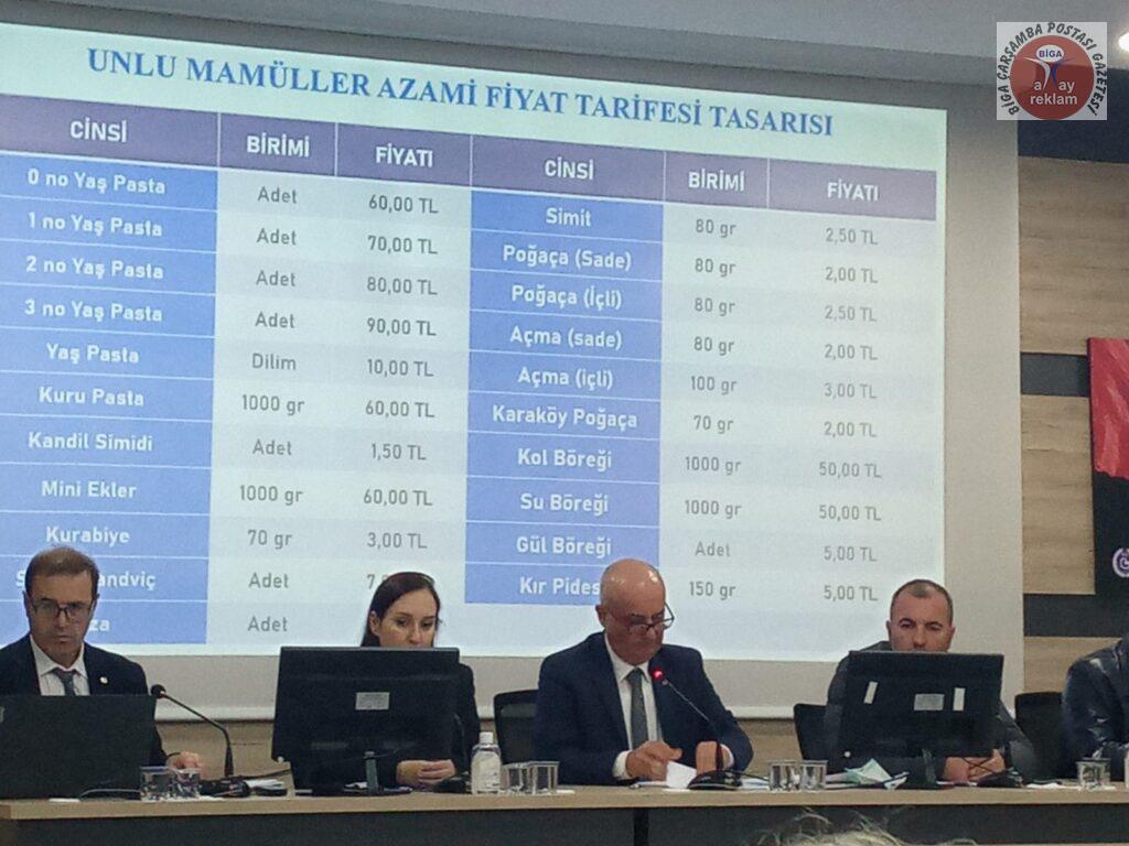 Mecliste yapılan müzakereler sonucunda; unlu mamüller ve şerbetli tatlılar azami fiyat tarifeleri güncellendi ve ayrıca 29 Kasım 2021 Pazartesi gününden itibaren Biga’da faaliyet gösteren fırın işletmelerine Tip 650’lik ekmeklik undan 230 gram Ekmek için KDV dahil 2,50 TL’den azami fiyat tarifesi verilmesi kararlaştırıldı.