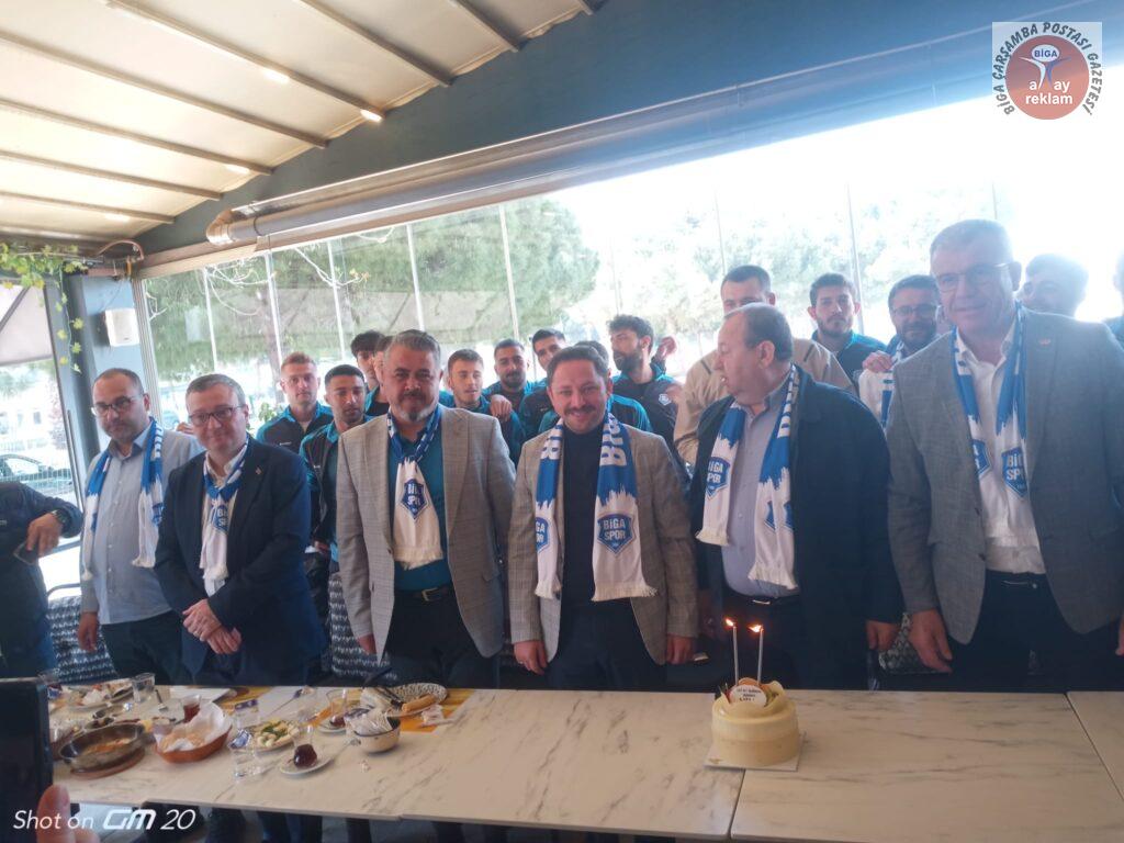 Maç öncesi Doğanlar Holding Yönetim Kurulu Yardımcısı ve Biga TSO Odası Başkanı Şadan Doğan Bigaspor’a maç kahvaltısı verdi. Kahvaltıya Biga Kaymakamı Ercan Kayabaşı, Biga Belediye Başkanı Alper Şen, Biga Cumhuriyet Başsavcısı Hüseyin Demir, belde belediye başkanları, siyasi parti ilçe başkanları, kurum müdürleri, sivil toplum kuruluşlarının başkanları, önceki dönem kulüp başkanları ve kulübün destekçileri katıldı. Kahvaltı programında yeni yaşına giren Şadan Doğan’a günün anısına, futbolcuların imzaladığı şampiyonluk tişörtünü hediye edildi.