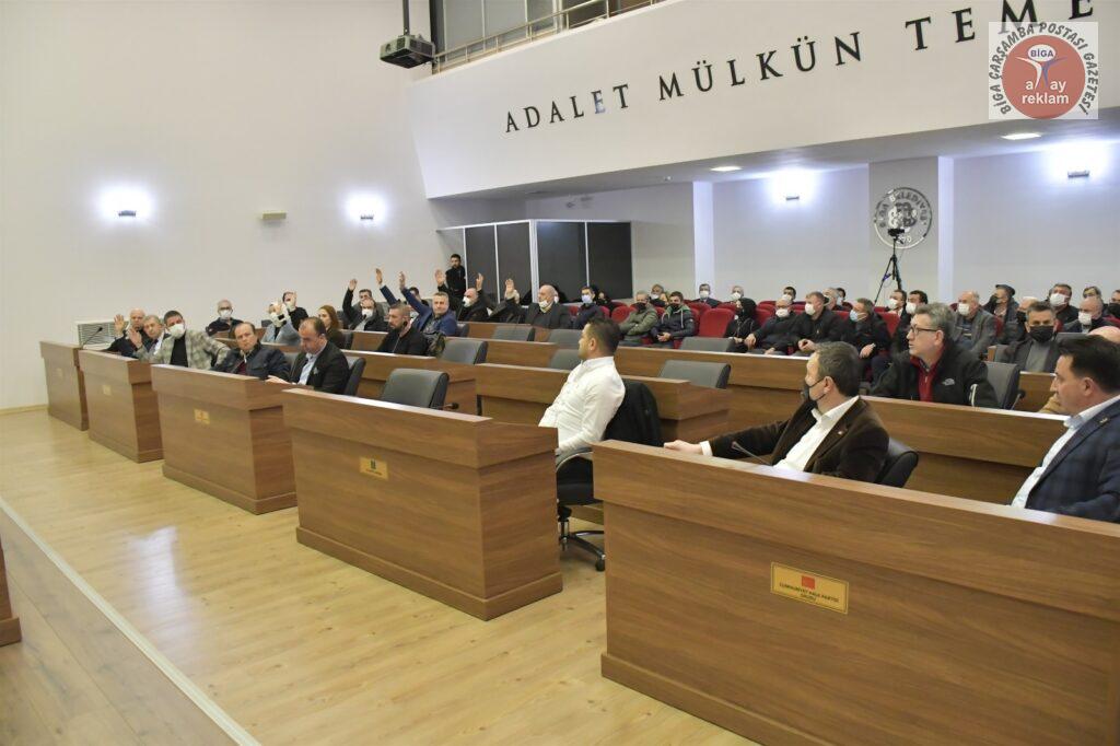 Biga Belediye Meclisi Mart 2022 ayı Olağan Meclis Toplantısı Biga Belediye Başkanı Bülent Erdoğan başkanlığında 1 Mart 2022 Salı saat 16:00’da Belediye Meclis Salonunda yapıldı. Toplantıda 12 gündem maddesi görüşülürken 9 madde oy birliği, 1 madde oy çokluğuyla kabul edilirken gündemin 5. ve 9. maddesi ise oy çokluğu ile İmar Komisyonu’na sevk edilmesi ve encümene yetki verilmesi kabul edilmedi.
