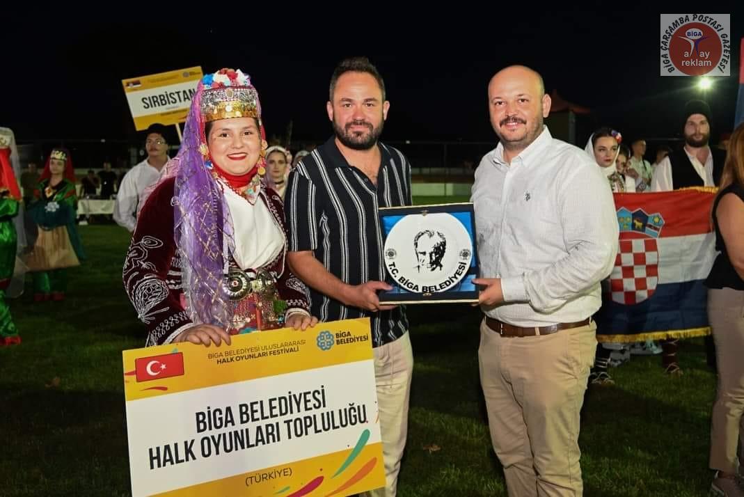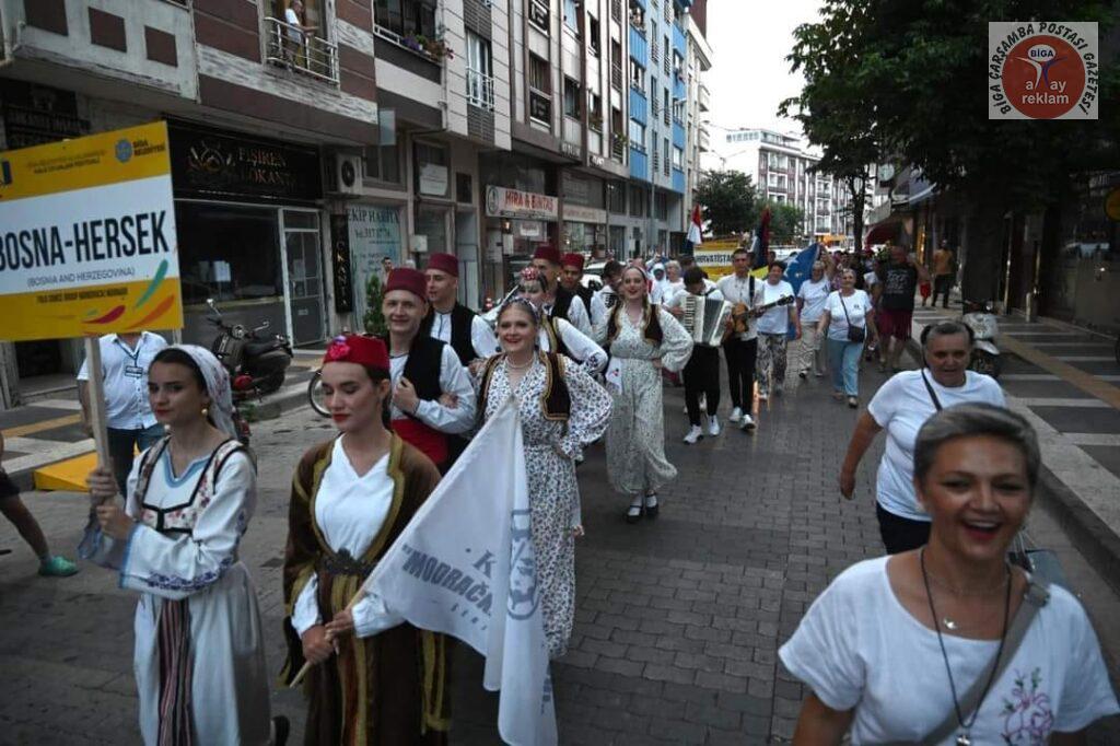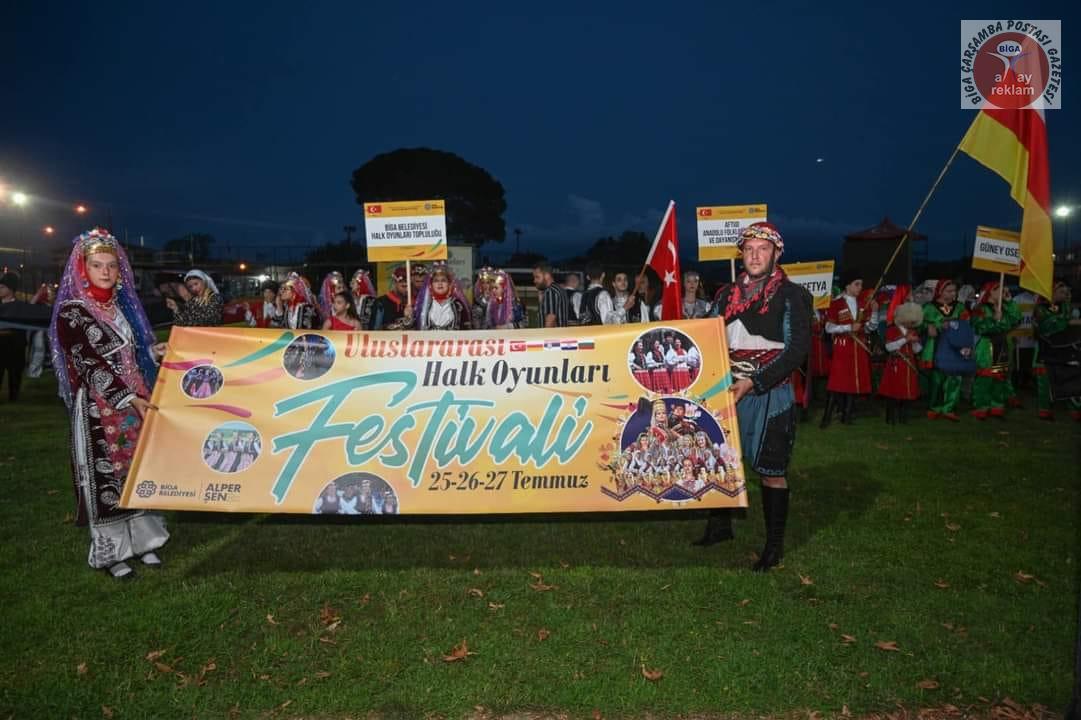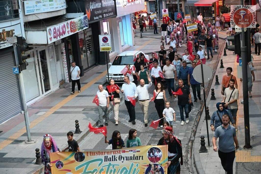 Biga Belediyesi Halk Oyunları Topluluğu’nun yanı sıra Ankara’dan ve uluslararası katılımcılar arasında Sırbistan, Bosna Hersek, Hırvatistan ve Osetya’dan gelen ekipler, kültürel zenginliklerinin sergilendiği Uluslararası Halk Oyunları Festivali’ne eşsiz performanslar ve renkli gösteriler damga vurdu.