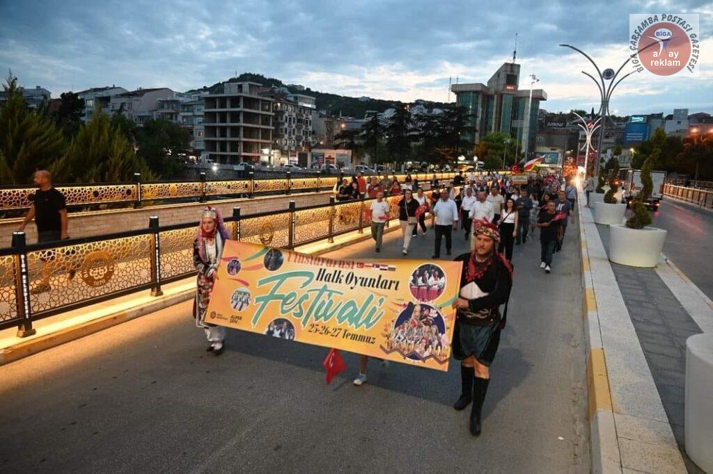 Biga Belediyesi’nin düzenlediği Uluslararası Halk Oyunları Festivali 25 Temmuz Perşembe akşamı yoğun katılımın olduğu kortej ile başladı. Yoğun katılımın yaşandığı kortej Ekrem Ergün İlkokulu’nun önünde başladı ve İrfan Şahin Er Meydanına kadar cokuyla devam etti.