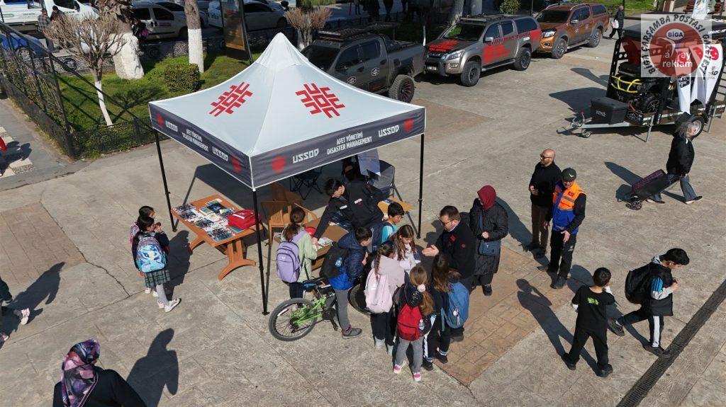Deprem ve afet bilincinin artırılması amacıyla düzenlenen etkinlikte, gönüllü ekipler tarafından vatandaşlara deprem öncesinde alınması gereken tedbirler ile afet anında doğru davranış şekilleri hakkında bilgilendirmeler yapıldı. Standı ziyaret eden vatandaşlar arama kurtarma ekipmanlarını yakından inceleme fırsatı bulurken, çocuklara ise afet farkındalığını artırmaya yönelik bilgilendirici anlatımlar gerçekleştirildi.