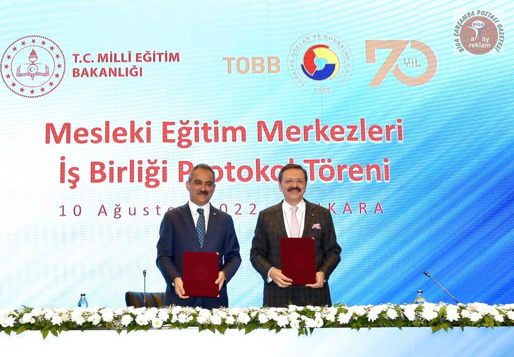 Şirketlerin, mesleki eğitim merkezlerinden daha fazla yararlanması için Türkiye Odalar ve Borsalar Birliği (TOBB) ile Milli Eğitim Bakanlığı işbirliği protokolü imzaladı.​ TOBB Konferans Salonu’ndaki Mesleki Eğitim Merkezleri İş Birliği Protokol Töreni’nin açılış konuşmalarını TOBB Başkanı M.Rifat Hisarcıklıoğlu ve Millî Eğitim Bakanı Mahmut Özer yaptı.