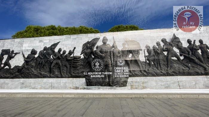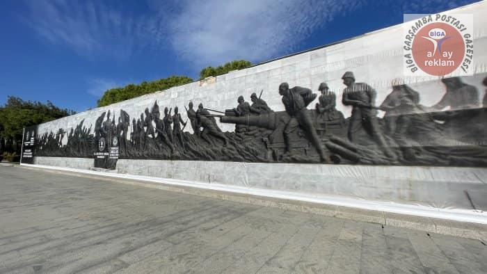 Çanakkale Tarihi Alan’da yer alan Şehitler Abidesi’nin tören alanında bulunan “Vatan ve Milli Mücadele Anıt Rölyefi” restore ediliyor. Şehitler Abidesi’nin tören alanında 2004 yılında yapılan 45 metre uzunluğunda, 3,5 metre yüksekliğinde dünyanın en büyük rölyeflerinden olan “Vatan ve Milli Mücadele Anıt Rölyefi” zaman içinde yıprandı. Tarihi Alan Başkanlığınca rölyefteki bozulmaların giderilmesi amaçlanmıştır. Cumhuriyetin 100. yılındaki 18 Mart törenlerine kadar restorasyon sürecini bitmiş ve tekrar ziyarete açık hale gelecektir. Zeytinburnu Belediyesi’nin destek verdiği restorasyon çalışmaları kapsamında rölyefte yer alan Mustafa Kemal Atatürk heykeli bronz malzemeden tekrar yapılacak, duvar kısmında yer alan ve Milli Mücadele’yi anlatan rölyef ise yenilenecektir.