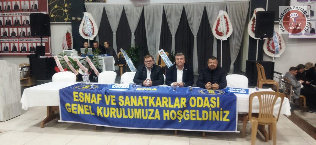 Genel Kurula yoğun katılım oldu. Çanakkale Esnaf Odaları Birlik Başkanı Ünal Özcan’ın Divan Başkanı olduğu seçimlerde Başkan Yardımcısı Biga Şoförler ve Otomobilciler Odası Başkanı Sait Tanur, Katip Üyeler ise Biga Kahveciler Odası Başkanı İlhan Yavuz ve Biga Lokantacılar ve Köfteciler Odası Başkanı Adnan Akçe oldu.