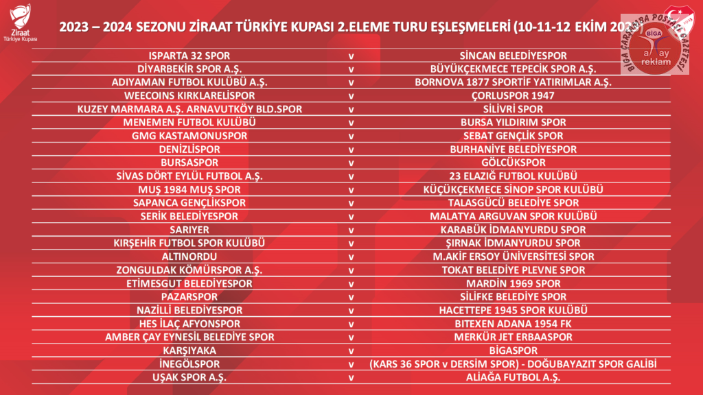 Çanakkale temsilcisi Bigaspor’un Ziraat Türkiye Kupası 2. Eleme Turundaki rakibi Karşıyaka oldu.